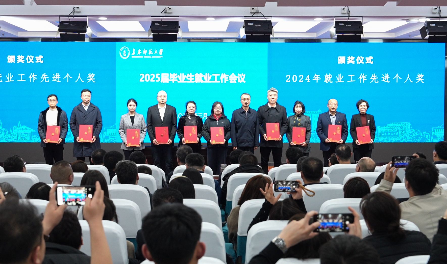 3月26日,学校在新图书馆报告厅召开2025届毕业生就业工作会议。党委书记刘多为2024年就业工作先进集体奖、就业工作进步奖获奖单位颁奖,并讲话。党委副书记、校长王延明为2024年就业工作先进个人代表颁奖。党委副书记张广翠主持会议。
